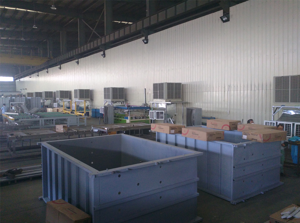 對于五金工廠車間降溫解決方案:針對機械加工車大面積、工作崗位不固定、有大量發熱設備、還伴隨油污異味等惡劣問題,通過環保空調(冷風機)達到換風、去異味油污、降溫,再利用工業大風扇大面積微風流動帶動全方位的空氣流通,可一次性解決高大空間通風降溫難題。